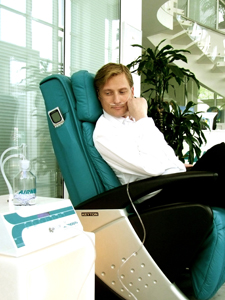 Zu den Interessenten dieser medizinischen Erstentwicklung gehören neben Persönlichkeiten aus Sport und Unterhaltung natürlich Hotels, Lifestyle- und Wellnesseinrichtungen, die ihren Gästen die kleine "Energie-Tankstelle" als Dienstleistung und Extra-Service zur Verfügung stellen. "Unsere wachstumsreichste Zielgruppe sind Unternehmen" verrät Bierther. "Wer seinen Mitarbeitern die Möglichkeit gibt, energieoptimierte Atemluft zu tanken, wird selbst am meisten davon profitieren. Sich so zu kümmern, fördert zum einen das Vertrauen der Mitarbeiter und stärkt andererseits die Bindung ans Unternehmen. Wer gesund ist und sich in seiner Umgebung wohl und wertgeschätzt fühlt, liefert natürlich bessere Arbeitsergebnisse."