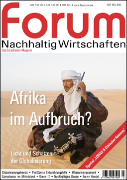 Der Rohstoffbedarf Chinas und Indiens vergrößert den Druck auf den Kontinent Afrika, dessen Einwohner ohnehin mit Krankheiten, Wasserknappheit und korrupten Wirtschaftsstrukturen zu kämpfen haben. Deshalb beleuchtet FORUM den Krisenherd Afrika und den Kampf um Ressourcen wie Wasser und andere Commodities vor dem Hintergrund einer globalisierten Welt. Im Vordergrund steht jedoch, wie Unternehmen als Good Corporate Citizen in Afrika nachhaltige Wirtschaftsstrukturen mit eigener Wertschöpfung fördern können.