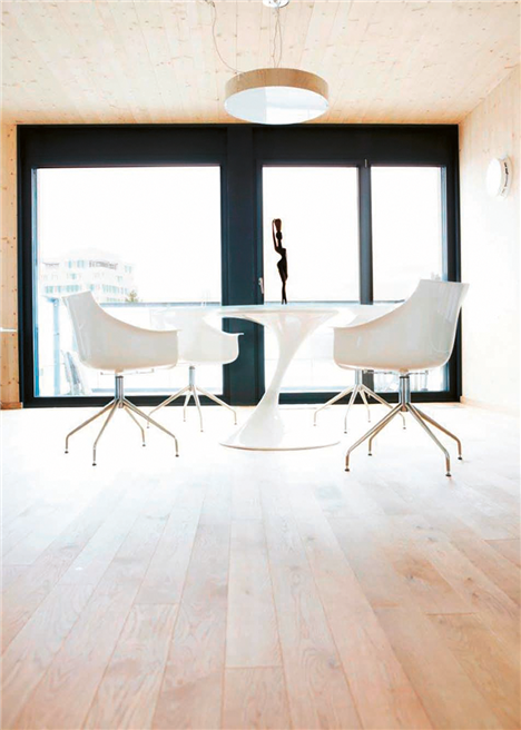Trotz strenger Brandschutzanforderungen durften im „H8" einige Massivholzdecken unverkapselt und damit sichtbar bleiben, weil das Gefährdungspotenzial als gering eingestuft wurde.