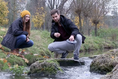 Das junge Start-up Aquakin aus Fürth hat einen ambitionierten Plan in die Wirklichkeit umgesetzt. Nach einem Jahr Forschung und Entwicklung wagt das Team aus vier Unternehmern die Markteinführung seines mobilen Wasserkraftwerkes für all diejenigen, die auch in entlegenen Gegenden Strom benötigen. Getauft wurde es auf den Namen Blue Freedom. Blue Freedom besteht aus einem kleinen Generatorgehäuse und einem herausnehmbaren blauen Rotor. Um ein elektrisches Gerät am vorbeifließenden Bach aufzuladen, wird es zunächst an den USB-Port des Wasserkraftwerks angeschlossen. Anschließend wird der Rotor aus dem Gehäuse entnommen und durch die integrierte Welle mit dem Generator verbunden. Das Gehäuse wird in Flussnähe befestigt, der Rotor wird ins Wasser geworfen, das Gerät beginnt zu laden.
