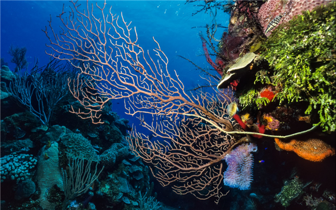 Korallen sind festsitzende, zentimetergroße, polypenartige und koloniebildende Nesseltiere, die als Weich- oder Steinkorallen besonders in tropischen Gewässern vorkommen. Neben den tropischen Arten gibt es Kaltwasserkorallen, die meist die Kontinentalhänge der Tiefsee besiedeln. Steinkorallen entwickeln ein Skelett aus Kalk, das sie aus der Synthese von im Wasser gelösten Kalzium- und Carbonat-Ionen aufbauen. Damit tragen sie fundamental zur Riffbildung bei. Sie ernähren sich vor allem von winzigem Plankton und anderen organischen Partikeln, welches sie mit ihren Tentakeln einfangen. Die tropischen, in den oberen lichtdurchfluteten Wasserschichten des Ozeans lebenden, Arten weisen eine Besonderheit auf: Sie bilden eine symbiotische Einheit mit sogenannten Zooxanthellen, meist einzelligen Dinoflagellaten. Diese in den Korallenpolypen angesiedelten Lebewesen produzieren über Photosynthese Nährstoffe und Sauerstoff, mit denen der Korallenpolyp zusätzlich versorgt wird. Gleichzeitig verleihen die Zooxanthellen ihm seine oft leuchtende Farbe.