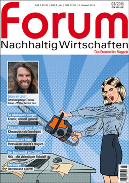 forum Nachhaltig Wirtschaften "Zukunft der Arbeit" können Sie ab sofort für 7,50 € zzgl. 3,00 € Porto und Versand (innerhalb Deutschlands) online (auch als pdf und E-Paper) bestellen sowie ab dem 01. August 2016 im Buchhandel und an Kiosken erhalten.