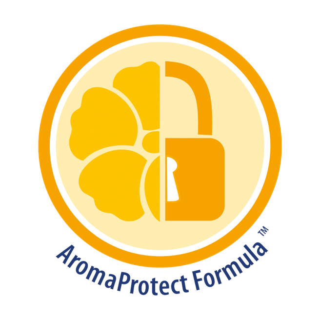 Grundsätzlich bestehen alle Gerüche aus hunderten verschiedenen Duftmolekülen. Die Kombination entscheidet darüber, ob wir sie als angenehmen Duft oder als störenden Gestank empfinden. Für die AromaProtect FormulaTM wurden zuerst die Moleküle identifiziert, die wir bei Katzenurin als penetranten Gestank wahrnehmen. Dann wurden neue Duftmoleküle entwickelt, die sich speziell auf die „schlechten" Moleküle anheften, sie sofort einkapseln und selbst einen angenehmen, frischen Duft freisetzen. Die AromaProtect FormulaTM versucht also nicht, selbst stärker als der Gestank zu sein, sondern verhindert wirkungsvoll, dass uns der Gestank von Katzenurin in die Nase steigt und vom Gehirn überhaupt wahrgenommen wird.