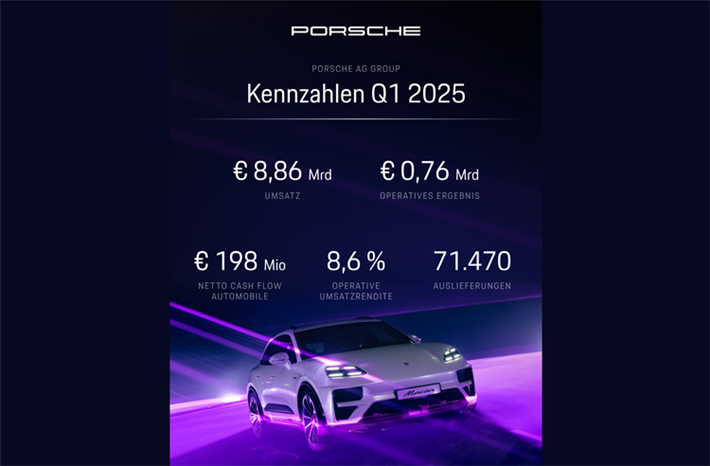 Die Porsche AG hat im ersten Quartal 2025 weiter entschlossen in die Zukunft investiert. Im Mittelpunkt standen dabei Investitionen in das Produktportfolio, in Software- und Batterieaktivitäten sowie die Anpassung der Organisation. Dafür nimmt das Unternehmen kurzfristige Belastungen in Kauf.