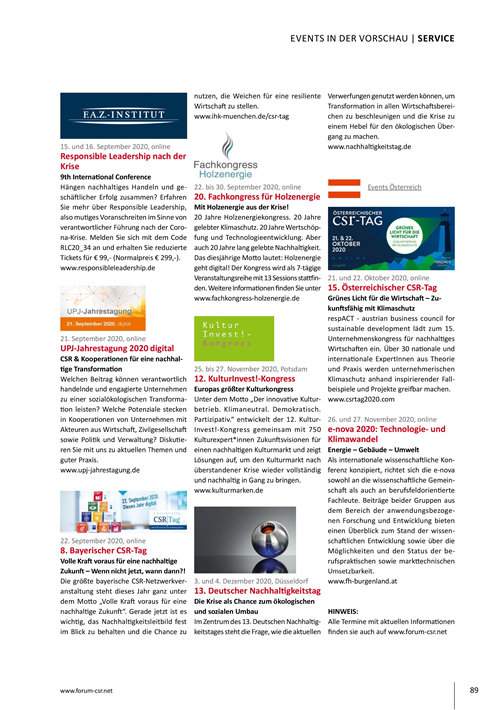 - 1x Ankündigung im Eventkalender des Printmagazins forum Nachhaltig Wirtschaften