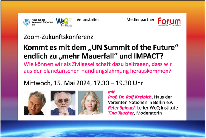 Dank der Idee von Bernhard Hanel haben wir jetzt alle und gemeinsam die Chance, Stimmgeberin und Geburtshelfer einer historischen Chance zu werden, ja, einer weltweiten Bewegung, die die „Generation Zukunft“ zum Weltthema Nr. 1 machen kann: die Initiative PRO FRIEDENSNOBELPREIS für die GENERATION ZUKUNFT.